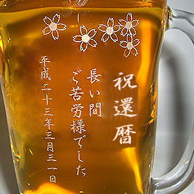 | 容量たっぷり500ml!男らしいフォルムが人気のプレミアムビールジョッキ!還暦祝いなどのプレゼント・贈り物としての人気急上昇中♪職人が繊細に細かく一文字一文字彫刻していきます。感動間違いなしの逸品です♪ |
