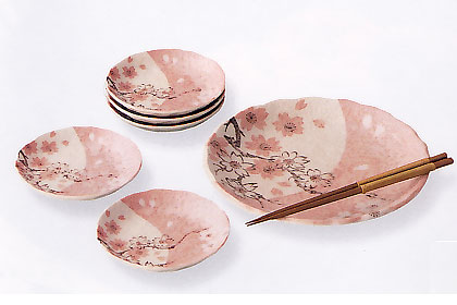 | 温かみのあるピンクのお皿が食卓を華やかに演出してくれます♪取り分け用の箸も付いてこのお値段はお買い得です☆還暦プレゼントに最適☆ |