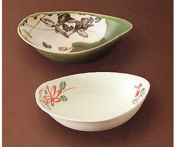 | お料理を選ばない織部と赤絵。重ねて収納でき、使い勝手の良い逸品です♪還暦プレゼントだけでなく、古希・喜寿の贈り物にどうぞ♪ |