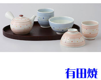 | 有田焼 刷毛点紋 夫婦茶碗+夫婦湯飲みのセット(急須・お盆付) |