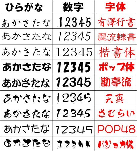 ※字体(フォント)の指定が無い場合は”有澤行書”で彫刻します。 |