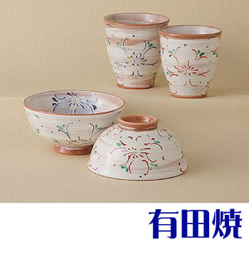 | 有田焼 粉引花絵 夫婦セット 夫婦茶碗+夫婦湯飲みのセット 睦揃え |