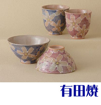 | 有田焼 一珍染桜 夫婦セット 夫婦茶碗+夫婦湯飲みのセット 睦揃え |
