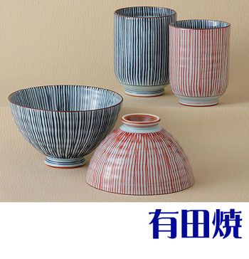 | 有田焼 古代千筋 夫婦セット 夫婦茶碗+夫婦湯飲みのセット 睦揃え |