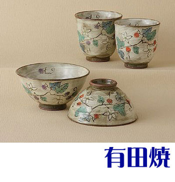 | 有田焼 草花(木苺) 夫婦セット 夫婦茶碗+夫婦湯飲みのセット 睦揃え |