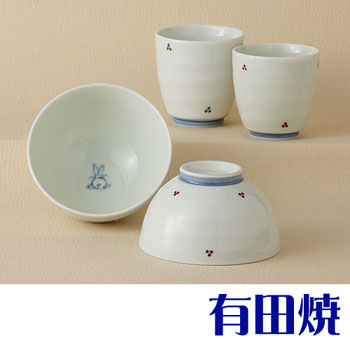 | 有田焼 ワラビー 夫婦セット 夫婦茶碗+夫婦湯飲みのセット 睦揃え |