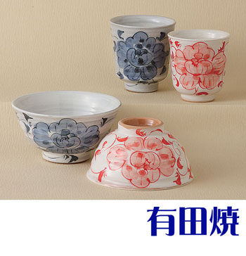 | 有田焼 染付牡丹唐草 夫婦セット 夫婦茶碗+夫婦湯飲みのセット 睦揃え |
