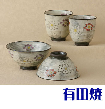 | 有田焼 化粧コスモス 夫婦セット 夫婦茶碗+夫婦湯飲みのセット 睦揃え |