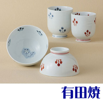 | 有田焼 ねこ 夫婦セット 夫婦茶碗+夫婦湯飲みのセット 睦揃え |
