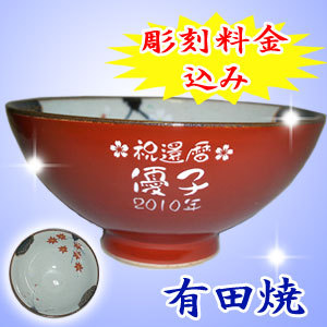 | 有田焼 茶碗 春秋 赤(彫刻料金込) |