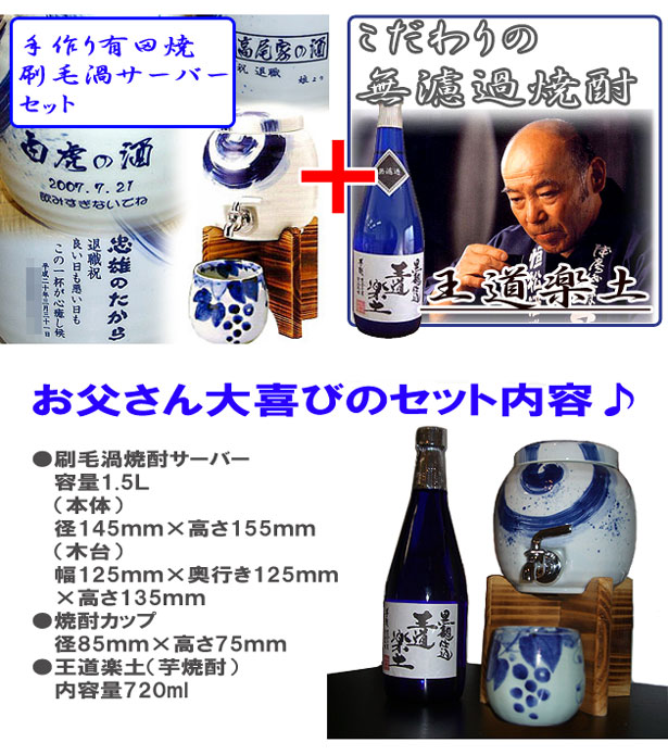 有田焼刷毛渦1.5L(木台・カップ付)+本格 芋焼酎(王道楽土)