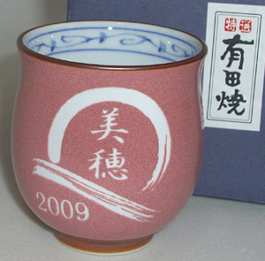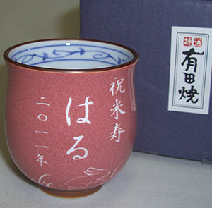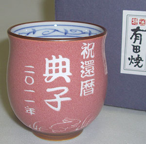 | 還暦祝いにおススメ♪有田焼 湯呑(小・赤) 彩釉兎絵 (彫刻料金込) |