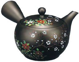 常滑焼 急須 昭崩窯 梅に椿 24号 430ml 帯アミ急須