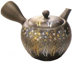 急須と言えば常滑焼。昭崩窯の作品です。金と銀の細かな細工が見た目にも素晴らしい逸品です☆置いておくだけでお部屋が華やかになります♪