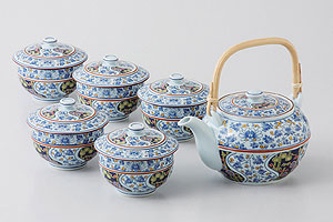 | 還暦祝いプレゼントにおススメ♪有田焼 錦花唐草 蓋付き茶器揃 |