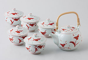 白磁と赤い絵付けがキレイな逸品です♪還暦プレゼントにおススメ☆日本トップクラスの陶磁器、有田焼の茶器セットです。 |