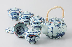 | 還暦祝いプレゼントにおススメ♪有田焼 内外山水絵 蓋付き茶器揃 |