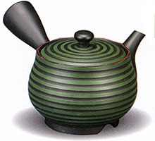 急須と言えば常滑焼。柏龍陶苑の作品です。緑と黒のストライプが高級感を演出します♪