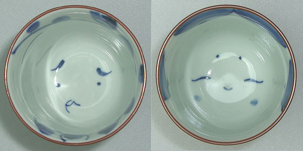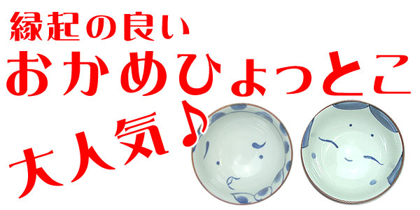 湯呑みの中にそれぞれ【おかめ】と【ひょっとこ】の絵柄が