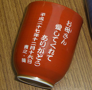 高級有田焼の湯呑に名入れが可能です。