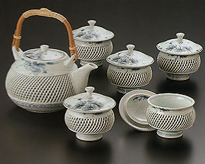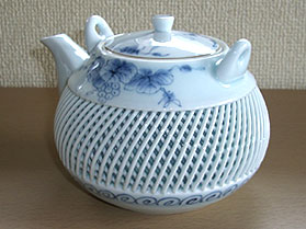 日本トップクラスの陶磁器、有田焼の茶器セットです。熟練した職人にしかできない網目の彫り物が高級感を演出します☆極上の一服をどうぞ♪