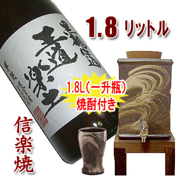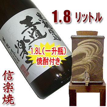 | 信楽焼 焼酎サーバー 1.8L(流線) お得セット(焼酎カップ・焼杉木台付) |